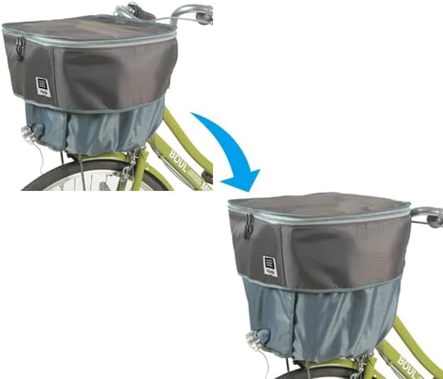 荷物の容量に合わせて高さを調整できるフロントバスケットカバー ファスナー開閉などの面倒な作業が必要なく、簡単に20Lから35Lまで容量アップすることが可能