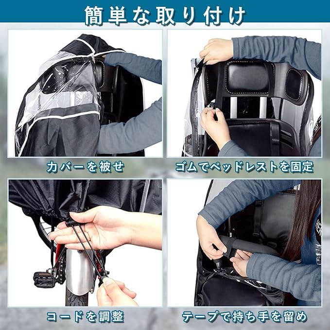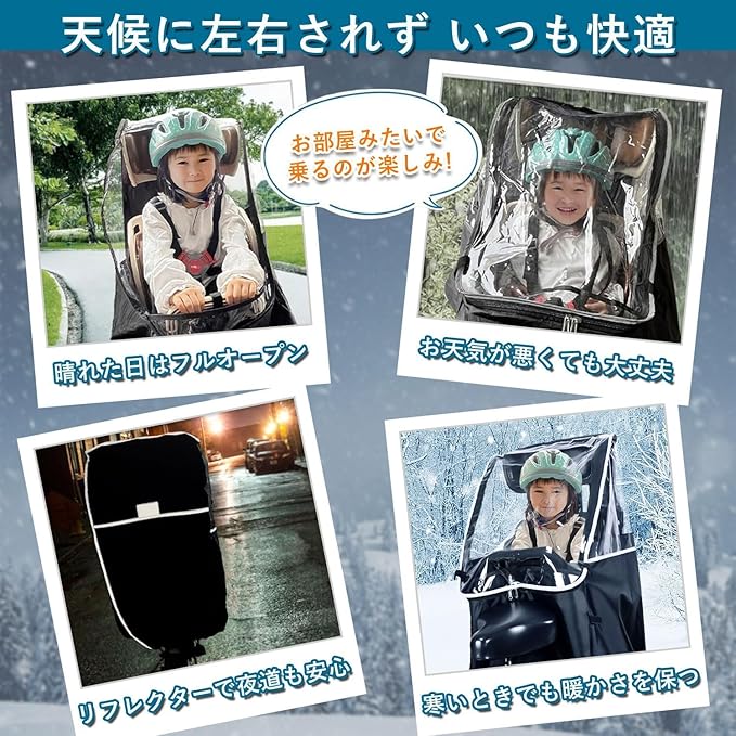 【高品質素材】透明な部分は100%PVC素材を採用して、本体生地は耐久性に優れた600Dナイロンが採用されて、2.7mmの厚さは従来のレインカバーより耐久性が更にアップ!何度折り曲げても割れたり開いたりしません。赤ちゃんの肌に刺激を与えず、安心して使用できます。撥水加工ので、雨除け効果は良くて、雨の日もご心配なく、自転車でお子様を送り迎えします。