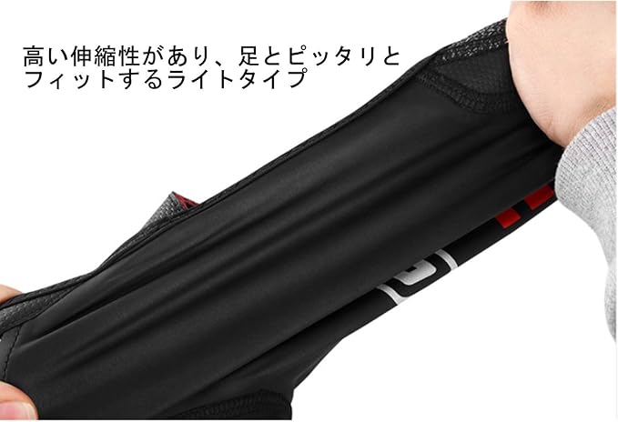 前面、側面、後ろ面とも反射テープがあり、夜の安全性を高めます。土踏まずのベルクロ部分で大きさを微調整でき、滑り止め加工もされており、ペダルから滑らない。
