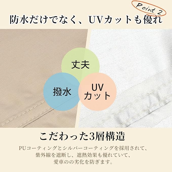 【高い防水性&二重縫製】:カバーは防水生地を採用します。思いっきり水をかけても濡れません!縫い目には二重縫製を採用、丁寧な縫製の上からさらに止水テープを施します。水が縫い目から入りません。安心の防水性能を持っています。