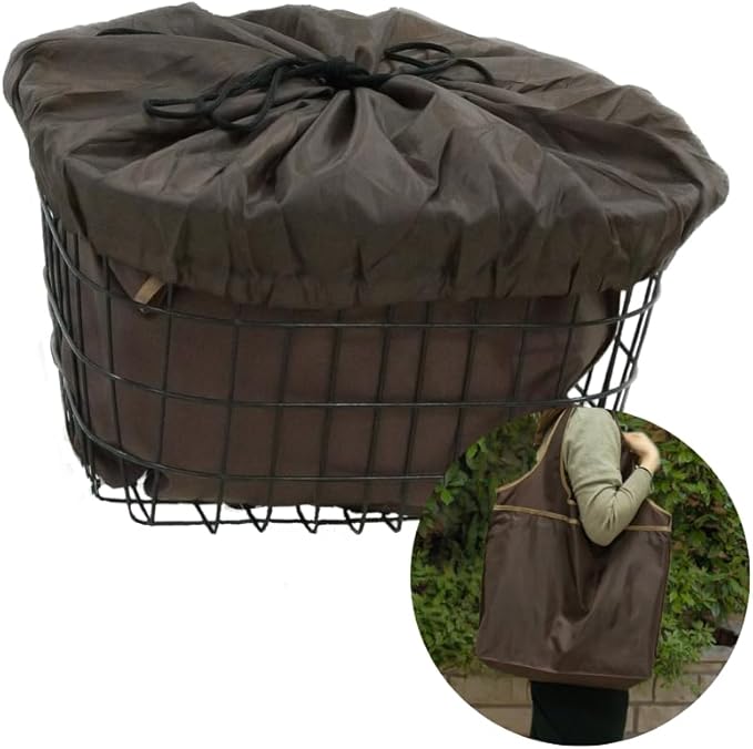 ほこりやちょっとした雨を防ぎ、かごの中身も見えないので安心です(完全防水ではありません)