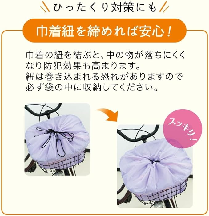 買い物したバッグをそのまま自転車のカゴにのせて、カバーをかぶせるだけの簡単装着。