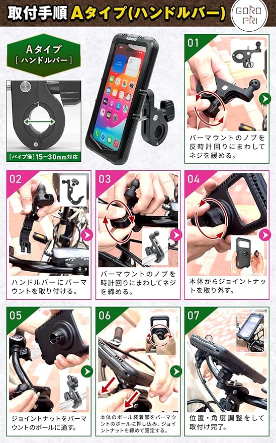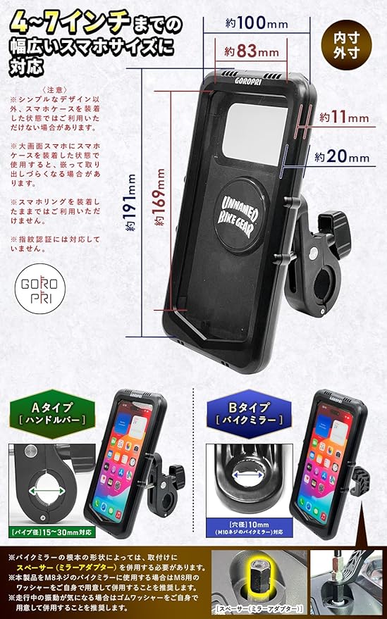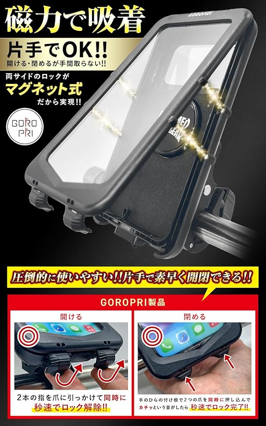 自転車 スマホホルダー 防水 バイク 自転車用 原付 雨除け 防水スマホホルダー 【マグネット式だから快適】 耐衝撃 角度調整が自由自在 超高感度スクリーン 防塵 防汚 7インチ以下対応 (Aタイプ(ハンドルバー))