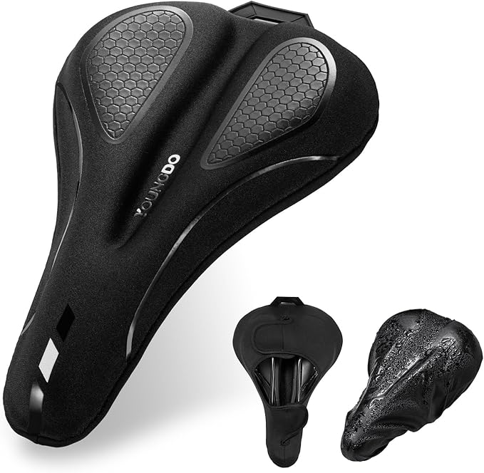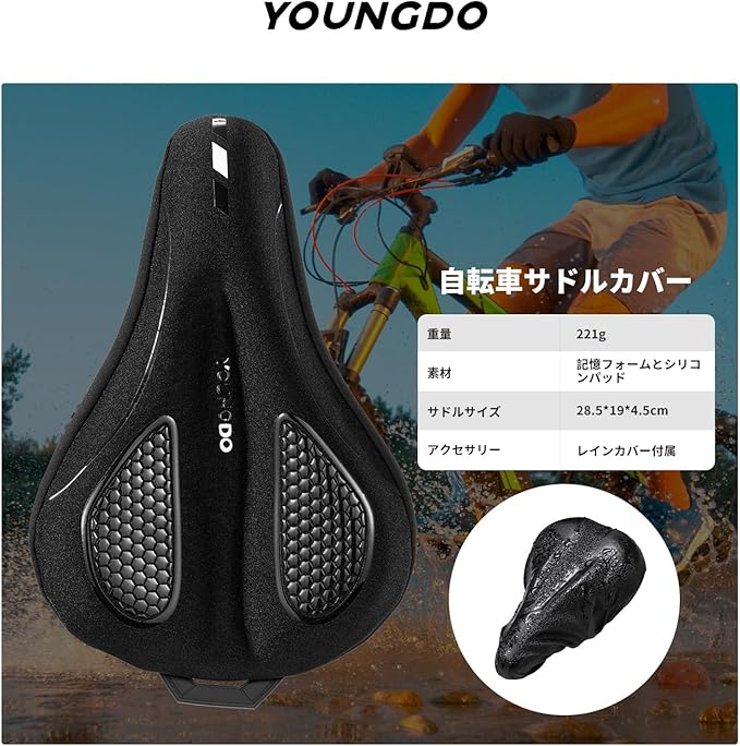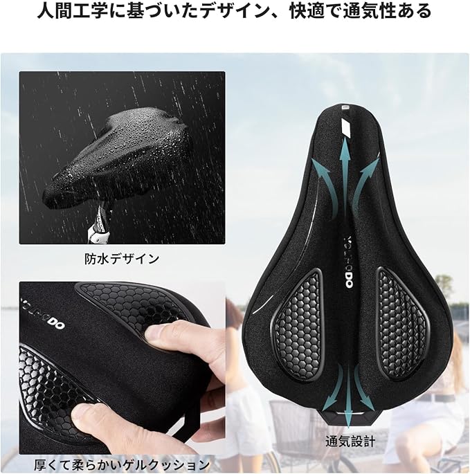 YOUNGDO 自転車サドルカバー サドルクッションカバー サドルカバー 超肉厚 低反発クッション 防水カバー付き お尻が痛くない 衝撃吸収 滑り止め 通気性 衝撃吸収 取付簡単 (ブラック)