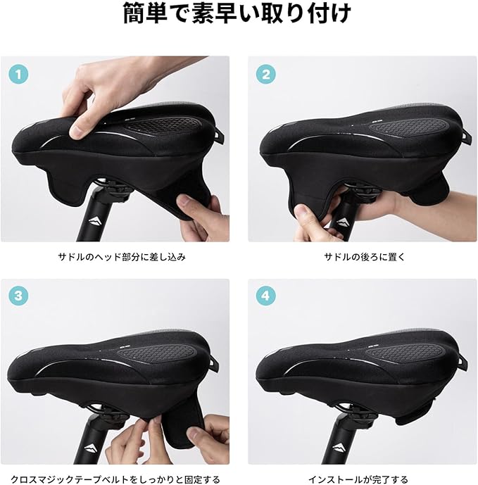 ✅【取り付けが簡単&幅広い適応車種】サドルカバーを自転車の座布団に固定して、マジックテープを貼り付けます。 サイズは30x19cmです。普通の自転車サドルに適応しています。