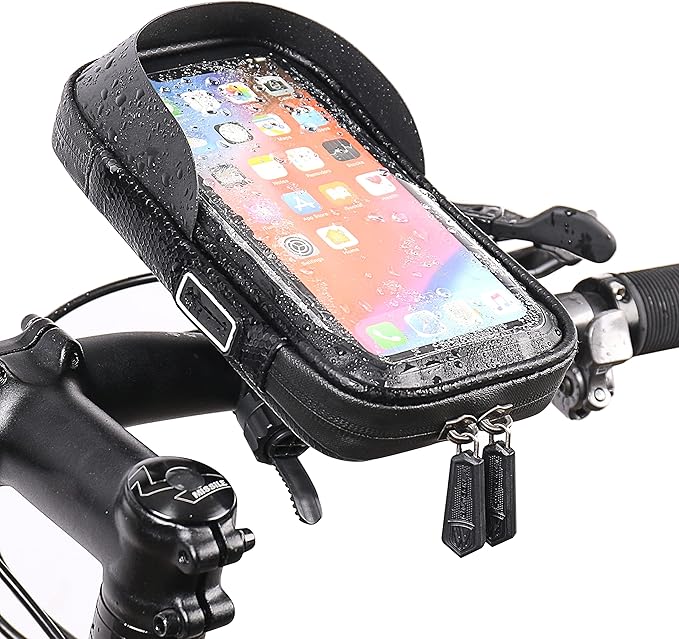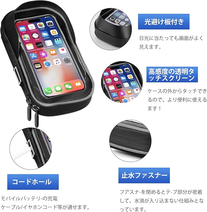 【防水&防圧 防塵】この自転車用スマホスタンドは生地表面にも、ファスナーの部分にも撥水処理しました。高品質なEVA素材を採用し、壊れにくい、耐久性と防塵性が強いです。防水機能を備えているので、突然の雨にも心配はいりません。360度回転可能、見えやすい好みの角度も変わってきます。