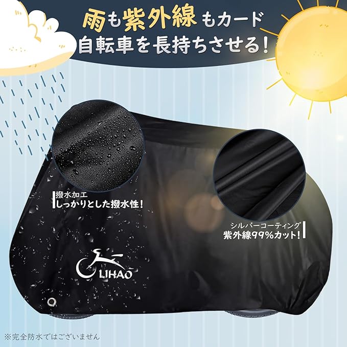 LIHAO 自転車カバー 防水 厚手 210D 大型 サイクルカバー 破れにくい 防犯 撥水加工 29インチまで対応 風飛び防止 UVカット 盗難防止 装着簡単 収納袋付き ブラック