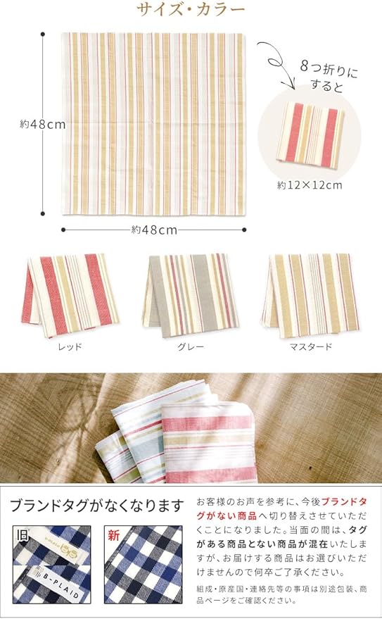 [B-PLAID] ハンカチ 3枚セット 日本製 約48 48cm 大判サイズ 綿100% キッチンクロス 食器拭き レディース メンズ プチギフト ストライプ柄 チェック柄 北欧 カジュアル ビジネス