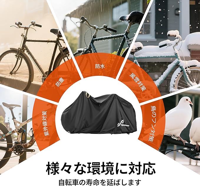 【便利な固定収納/携帯機能】Sportneer自転車カバーは収納袋付きだけではなく、自転車のヘッドに掛けて直接収納もできます。初めの一度取り付けるだけで済み、使用しない時はヘッドに掛けて、使う時にいつでもどこでも開くことができ、保管が非常に便利で、持ち運びの問題を心配する必要がなくなりました。