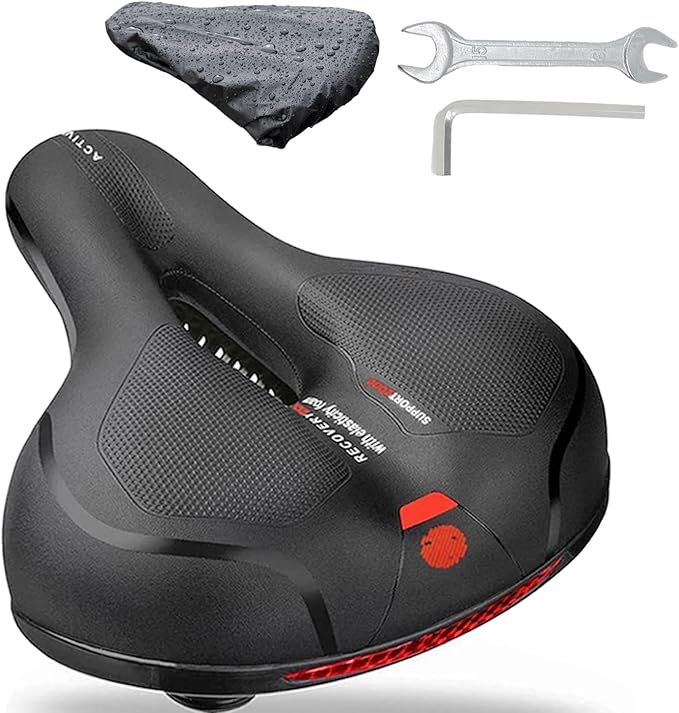 自転車サドル 超極厚 穴開き 防水防裂 通気 防水カバー付き 専用工具付き 反射テープ 衝撃吸収 高密度クッションが圧力分散 お尻が痛くない 10,000回ライド耐久テスト済み ソフトクッションサドル クロスバイク マウンテンバイク ロードバイク ママチャリ