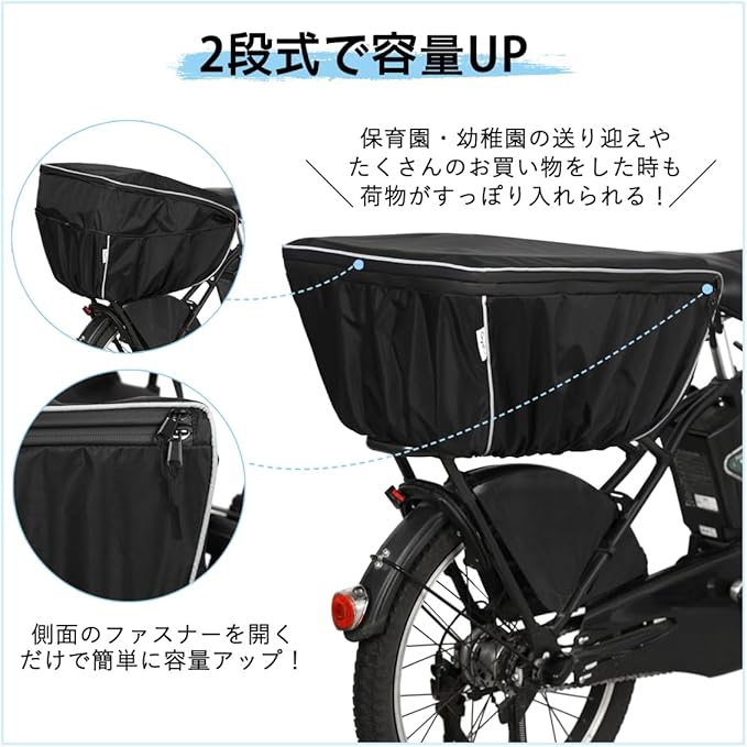 自転車 カゴカバー 後ろ 防水 二段式 容量アップ 撥水加工 止水ファスナー 反射帯付き 自転車 バスケット 後ろ レインカバー 日よけ 雨よけ GyuPit