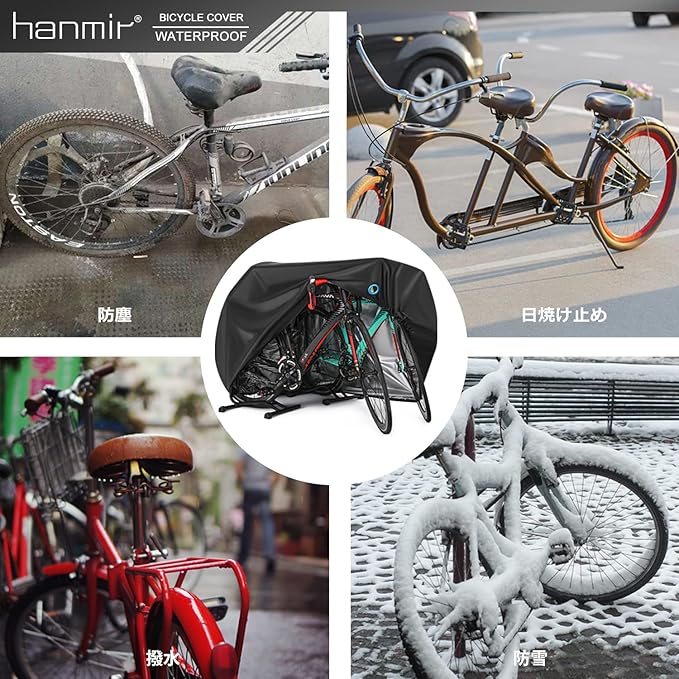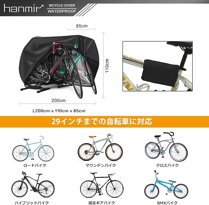 Hanmir 自転車カバー サイクルカバー 厚手 防犯 防風 防塵 耐熱 UVカット 撥水加工 破れにくい 鍵穴盗難防止 雨雪対応き 29インチまで対応 収納袋付き