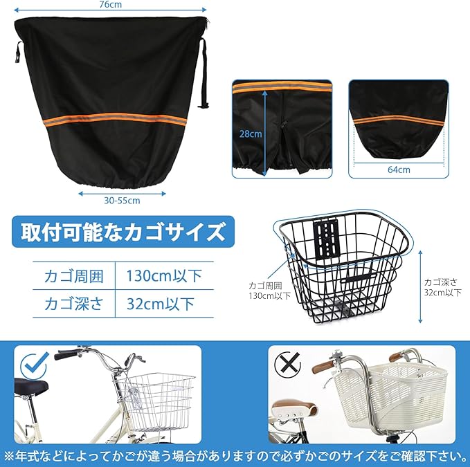 自転車かごカバー 防水 厚手 破れにくい 500D 大きめ
