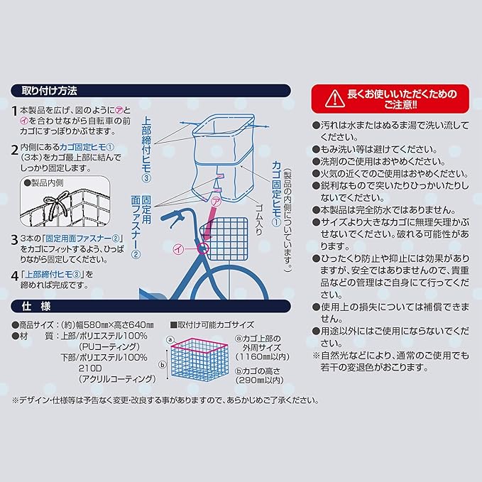 取付可能カゴサイズ:カゴ上部外周サイズ1160mm以内、カゴの高さ290mm以内