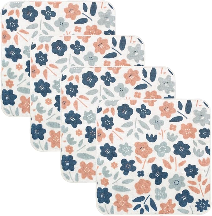 オルタ(oruTa) ハンカチ 4枚セット 個包装 ミッケガーゼ タオルハンカチ ガーゼハンカチ 泉州タオル プチギフト リボンシール付き レディース 綿100%(24 24cm, フルール)