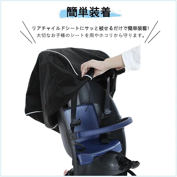 大切なお子様のシートを雨、ホコリや日焼けから守ってくれる自転車チャイルドシートカバーです!