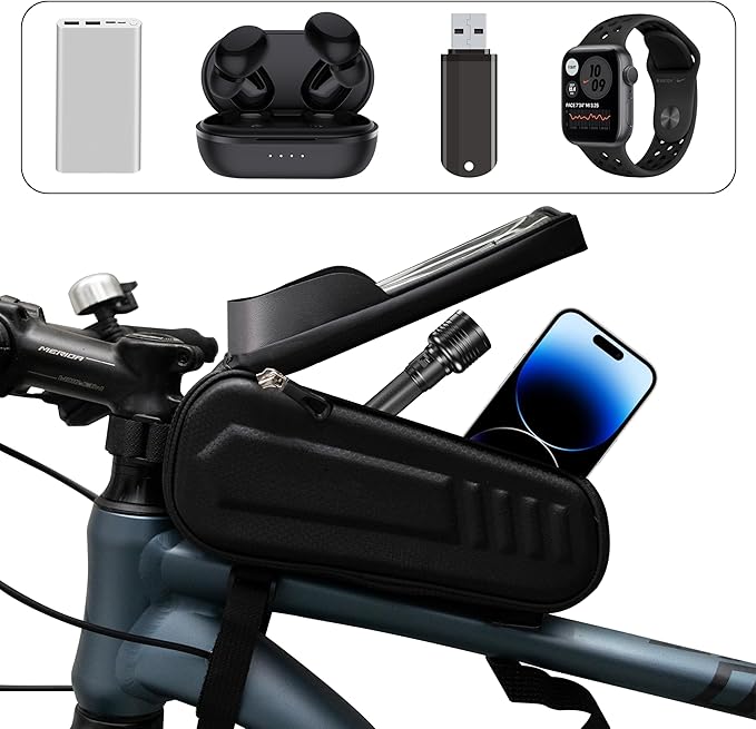 自転車バッグ 防水 トップチューブ フレームバッグ TPU高感度タッチスクリーン対応 スマホホルダー ロードバイク/MTB対応 24 10 15cm 170g 耐摩耗ハードシェル 取り付け簡単 小物収納