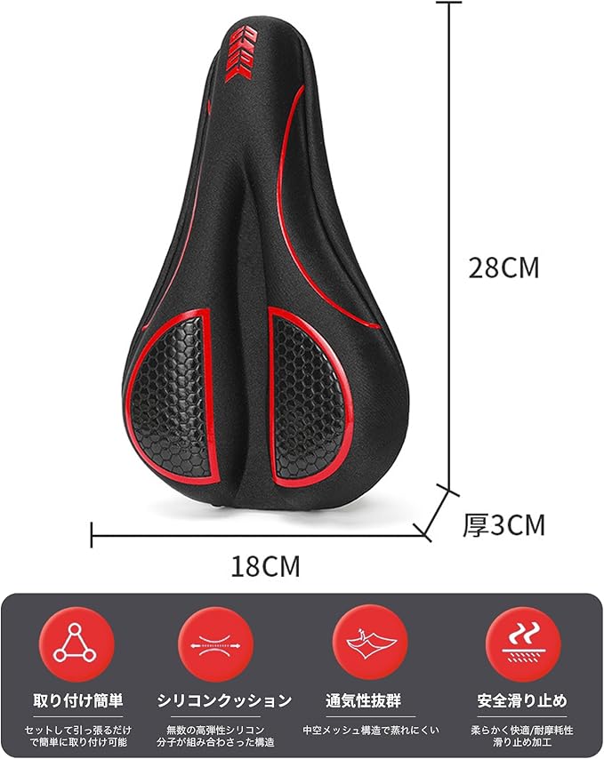 自転車サドルカバー サドルクッション サドル 超肉厚 低反発クッション お尻が痛くない 衝撃吸収 滑り止め 通気性 衝撃吸収 取付簡単 防水カバー付き
