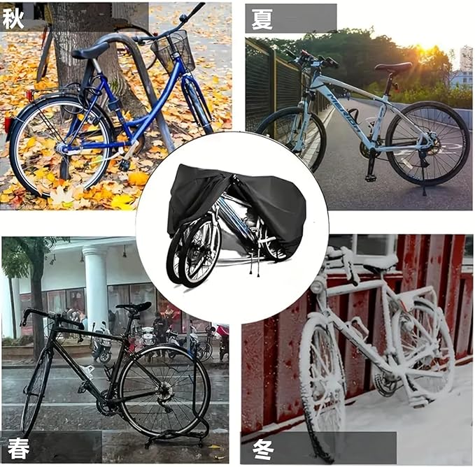 【さまざまな自転車に対応】カバーのサイズは200cm *110cm *85cm。ほとんどのマウンテンバイク、ロードバイク、電動バイクなど、最大29インチのホイールサイズに対応しています。スポーツサイクル、ママチャリ、折りたたみ電動自転車スクーターなども使えます。(注文前に自分のバイクを測定してください)。