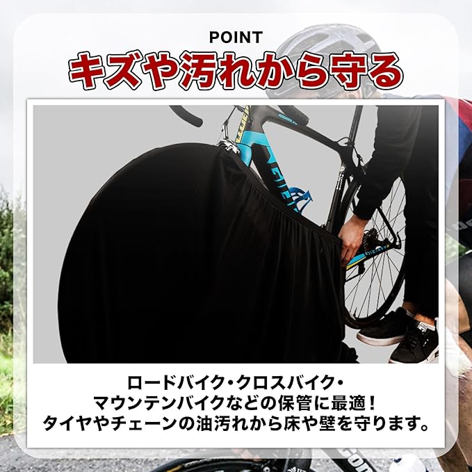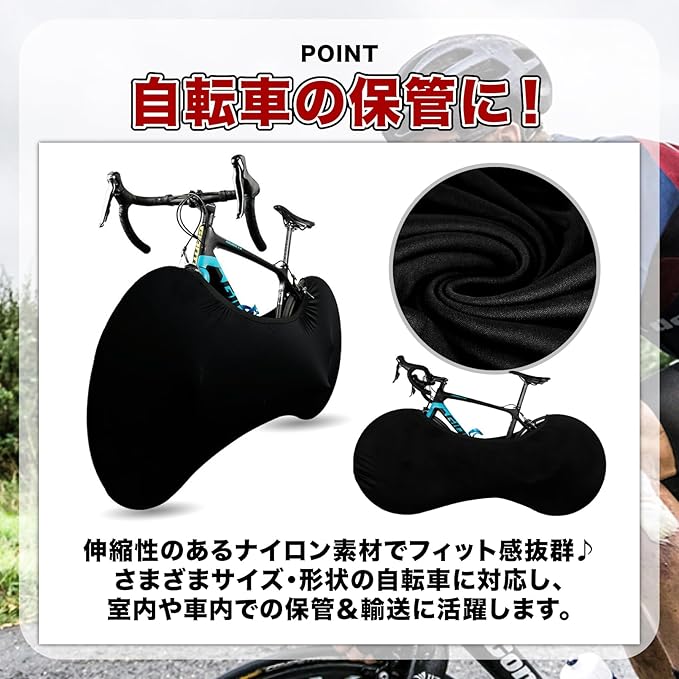 自転車 保管 カバー 室内保管 汚れ防止 伸縮素材 ロードバイク対応 (ブラック)
