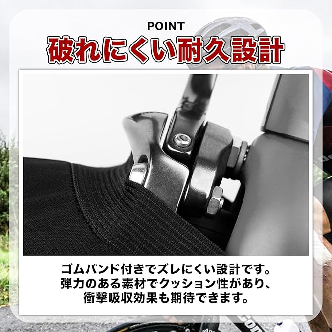 【破れにくい耐久設計】伸縮性のある生地であらゆる自転車にしっかりフィット!ゴムバンド付きでズレにくい設計です。弾力のある素材でクッション性があり、衝撃吸収効果も期待できます。