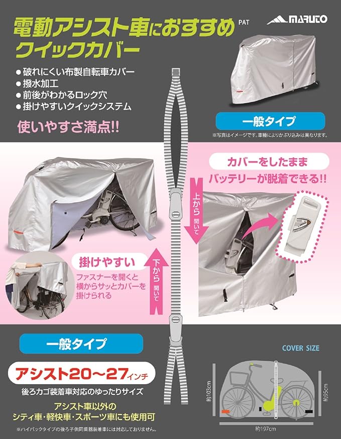 カバー力 電動アシスト車、シティ車、軽快車、スポーツ車(20-27インチ)用フルカバー