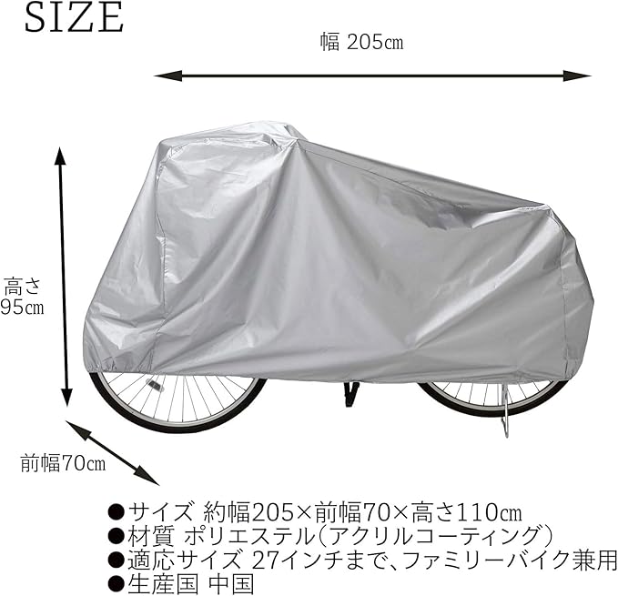 雨・ホコリから自転車を守る!すっぽりかぶせる自転車カバー ファミリーバイク兼用。
