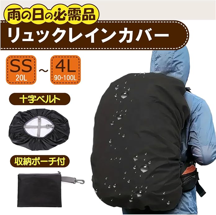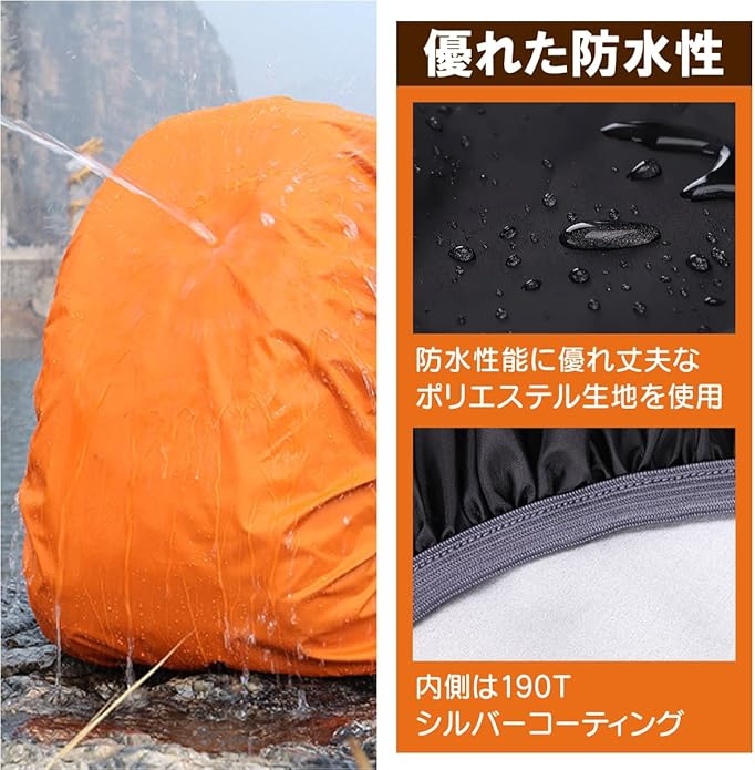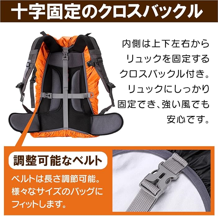[KASSAI] リュックレインカバー 20-100L 防水 クロスバックル 収納袋付 選べるサイズ 日本国内検品
