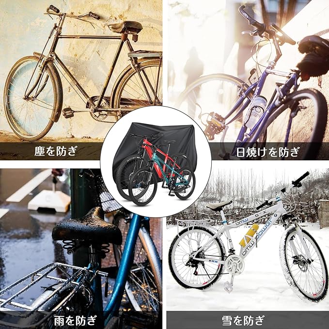 【さまざまな自転車に対応】スポーツサイクル、ママチャリ、折りたたみ電動自転車スクーターなども使えます。カバーのサイズは200cm *110cm *85cmほどなので、29インチまでの自転車や27インチまでのバイクに対応しています。