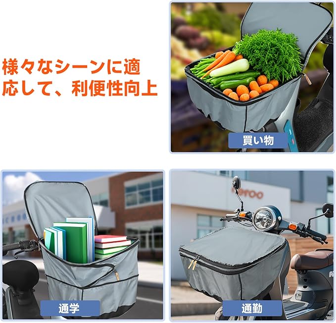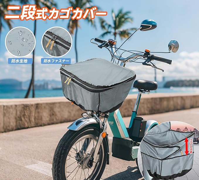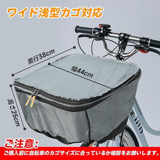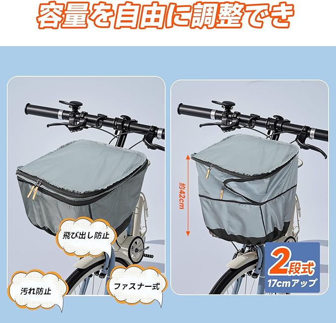 自転車 カゴカバー 2段式 防水 撥水 防塵 ワイド 前かごカバー 前後兼用 大容量 取り付け簡単 折りたたみ式 バスケットカバー ファスナー式 三層構造 グレー