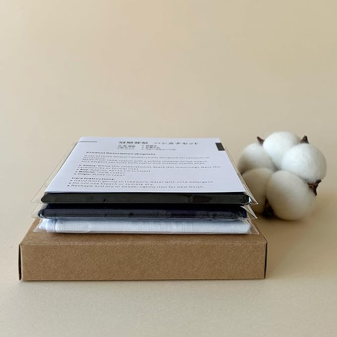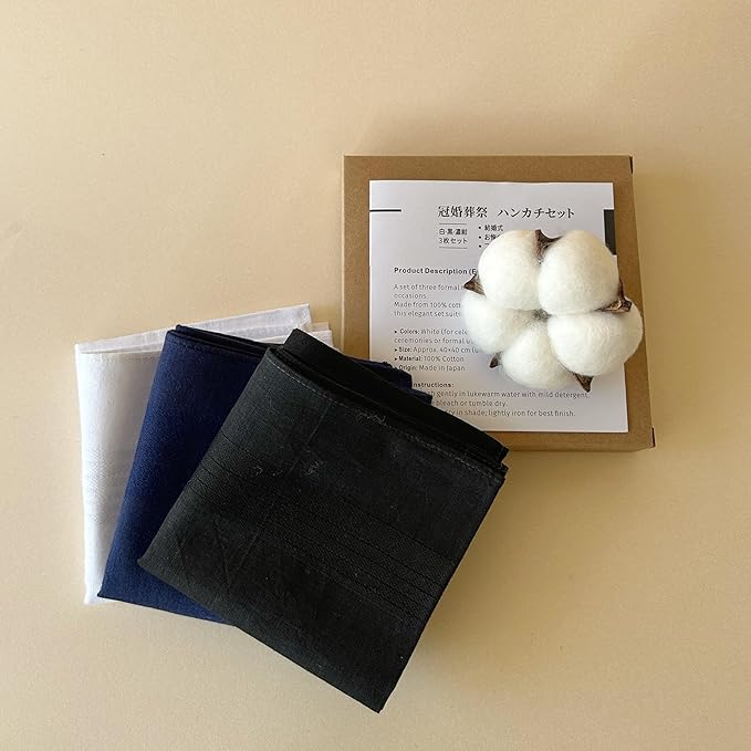 This three-piece handkerchief set is thoughtfully designed for formal occasions such as weddings, memorial services, and other ceremonial gatherings.