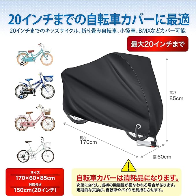 Favuit 自転車カバーは、あなたの自転車に全方位の究極の保護を提供いたします。自転車を自転車置き場や庭に保管していても、いつも乾燥で、ほこりや傷がなく、日光から保護された状態を保ちたいと思うでしょう。こちら高品質の210Dナイロン防水カバーはあなたの思いを実現できます。この自転車カバーは、生地にシルバーコーティング を施しているので、強烈な紫外線を大幅カットすることができ、紫外線による劣化を防ぐことができます。また、210デニールのオックスフォード製なので、軽量でなめらかなのに破れにくい。雨だけでなく、雪や埃、汚れやサビからも自転車を守ります。以下の特性があります:【耐久性】【超撥水】【風飛び防止】【盗難防止】【さまざまな車種に対応】Favuit自転車カバーの特徴:1.210Dナイロン、PU塗装で、耐久性が非常に優れています。2.前部に安全ホールがあり、カバーは自転車の前輪とロックできるため、安全で盗難を防止できます(ロックは含めません)。3.真ん中にストームストラップが付き、風の強い日でもカバーを固定できます。4.前中と後部に伸縮性のある裾があり、両輪の下にぴったりとフィットできます。5.高品質の紐付き収納袋が付き、収納に便利です。6.反射ループが付き、夜間でも簡単に位置を確認できます。7.四季通用:雨/塵/埃/黄砂/雪/霜/いたずらなどから愛車を守り、自転車をしっかりとガードします。仕様:材質:210Dのポリエステルのオックスフォードサイズ:約200cm 110cm 70cm/170cm 85cm 60cm対応車種:29インチまで対応色:ブラックとシルバー本体のみ :340g、収納袋込み :約350gパッケージ内容:Favuit自転車カバー x 1収納袋 x 1 注意事項:※汚れは水またぬるま湯で洗い流してください。※洗濯機、及びもみ洗いは生地が傷みますのでお避け下さい。中性洗剤以外の洗剤は使わないでください。 ※開封後、洗濯後はカバーをよく乾かし防水スプレーをかけるとより長くご利用いただけます。※鋭利な突起物等で突いたりひっかいたりしないように。※全く防水ではないので雨量によっては自転車が濡れる場合があるが、予めご了承ください。※カバーできるように、ご注文の前に自転車のサイズを測ってください。※万が一、商品に何か不具合がございましたら、アカウントサービス内の「アカウントサービス」-「注文履歴」-「出品者に連絡する」から、ご連絡をいただきますようお願い申し上げ。