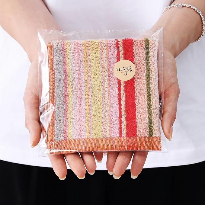ストライプタオルハンカチを1枚ずつラッピングをしお届けいたしますので、届いたらすぐにご利用いただけます!