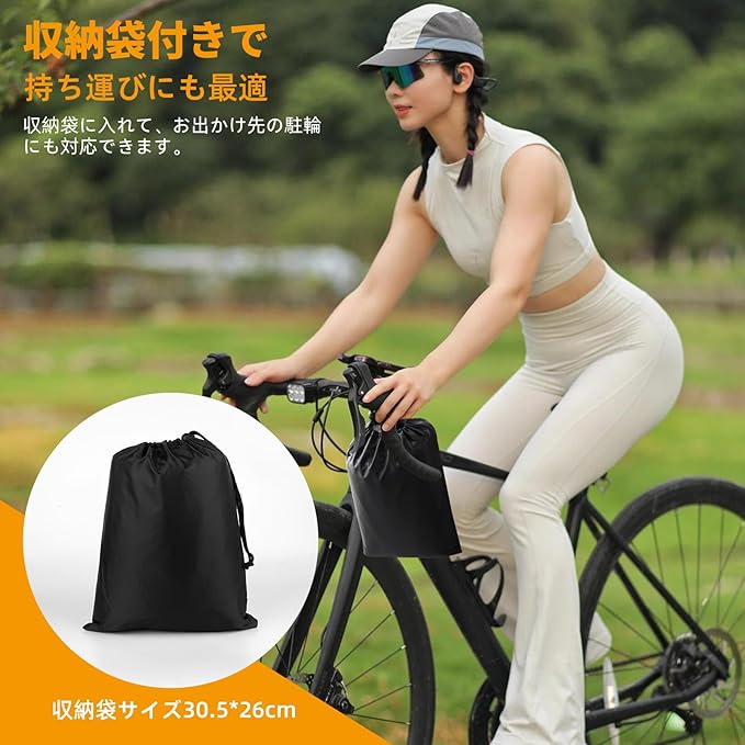 【革新的な高品質210Dオック生地な防水素材を】210Dオックスフォード生地を採用しており、ナイロン生地よりも厚くて丈夫で、破れにくいです。PUコーティング加工とダブルステッチ縫製技術により、防水性能が高く、雨、雪、氷、風、埃、直射日光など、さまざまな悪天候にも対応可能です。長時間使用しても漏水の心配がなく、大切な自転車をしっかりと保護します。