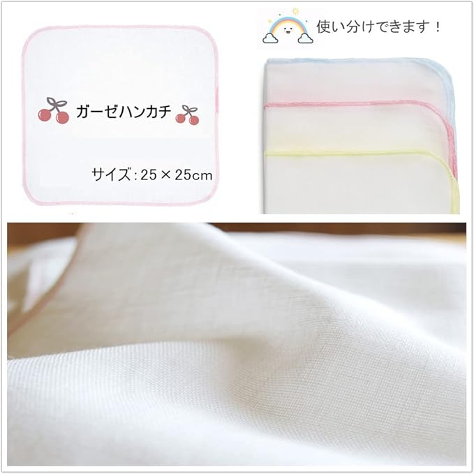 品質保証があるガーゼハンカチ・沐浴ガーゼ。商品が到着後30日以内返品・交換ができる。【サイズ】ガーゼハンカチ:25*25cm【縁飾り クリーム8枚 ブルー8枚 ピンク8枚】【素材】コットン100%【中国製】【一枚一枚検品済み】
