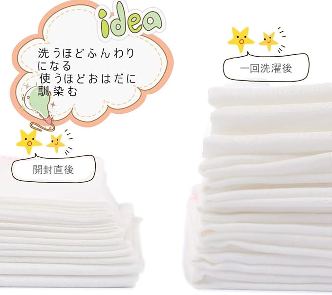 子育てが楽になるガーゼタオル。ハンカチ、沐浴布、赤ちゃんのガーゼタオル、よだれかけ、ベビービブとしては大活躍。24枚が必要。