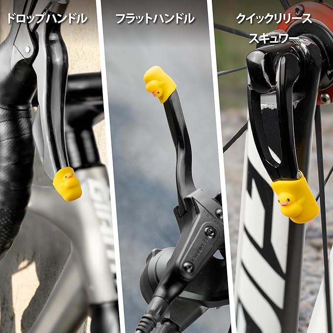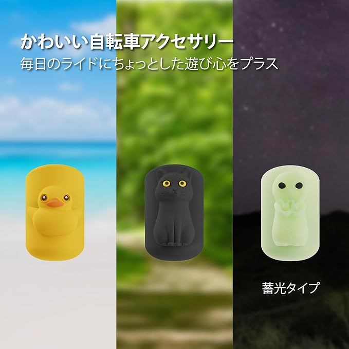 【かわいいキャラクターで愛車をデコレーション】 猫、アヒル、外星人(夜光タイプ)の3種類から選べる、かわいい キャラクター デザイン。見た目にも楽しく、自転車を個性的に演出!子供から大人まで、幅広いサイクリストにおすすめのブレーキレバーカバーです。