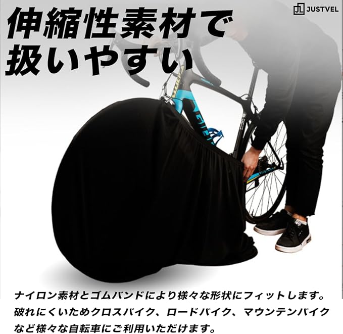 JUSTVEL 自転車カバー 自転車 保管 ロードバイク クロスバイク 室内保管 ホイールカバー 車載 輸送 持ち込み ストレッチ素材