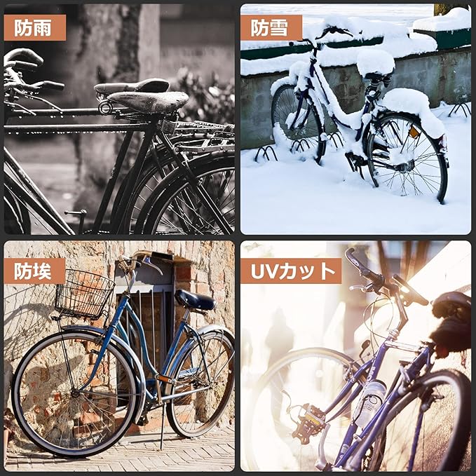 【カバーサイズ】サイズは200cm *110cm *70cmです。自転車カバーは高品質の生地を採用しています。丈夫で柔らかくて、破れにくいのです。風雨、埃、紫外線によるダメージから自転車を守ります。