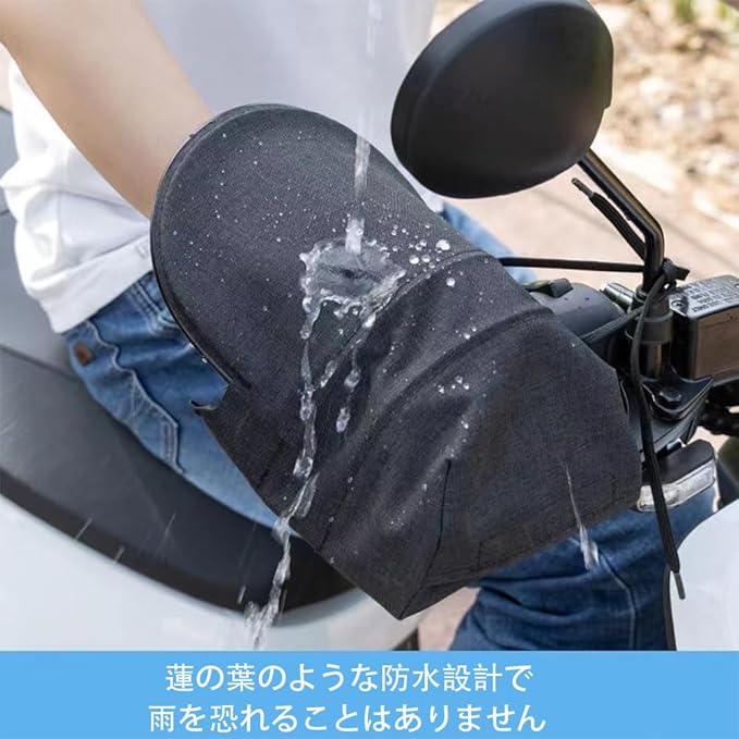 ユニバーサルデザイン:オートバイ、電動自転車、三輪車、自転車など、幅広い車種に対応しています。大型カバーと固定式設計でハンドルバーをすっぽりと包み込み、様々な車種に適応します。