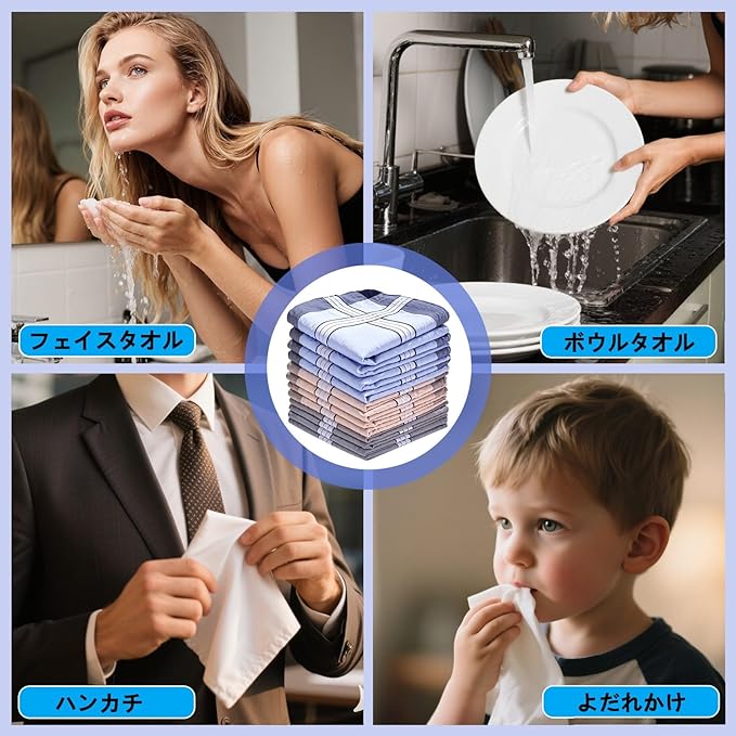 プレミアム素材:柔らかく通気性に優れ、肌に優しいコットン生地を使用。敏感肌の方にも最適です。再利用可能で環境に優しいため、使い捨てペーパータオルの理想的な代替品です。