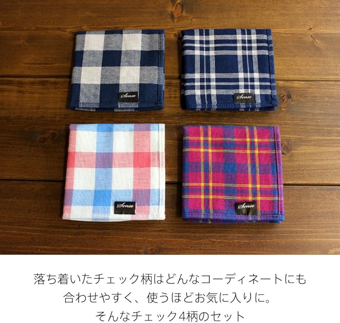 パイルとガーゼの メンズ タオルハンカチ 4枚セット