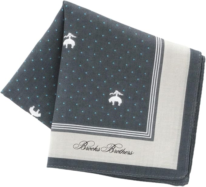 ブルックス ブラザーズのシンボルマークのGF(ひつじ・ゴールデン フリース)にピンドットを組み合わせ、シンプルなデザインの中にもブランドらしさが表現されたプリントハンカチです。 洗って、干す、だけ! easy care のハンカチーフ。