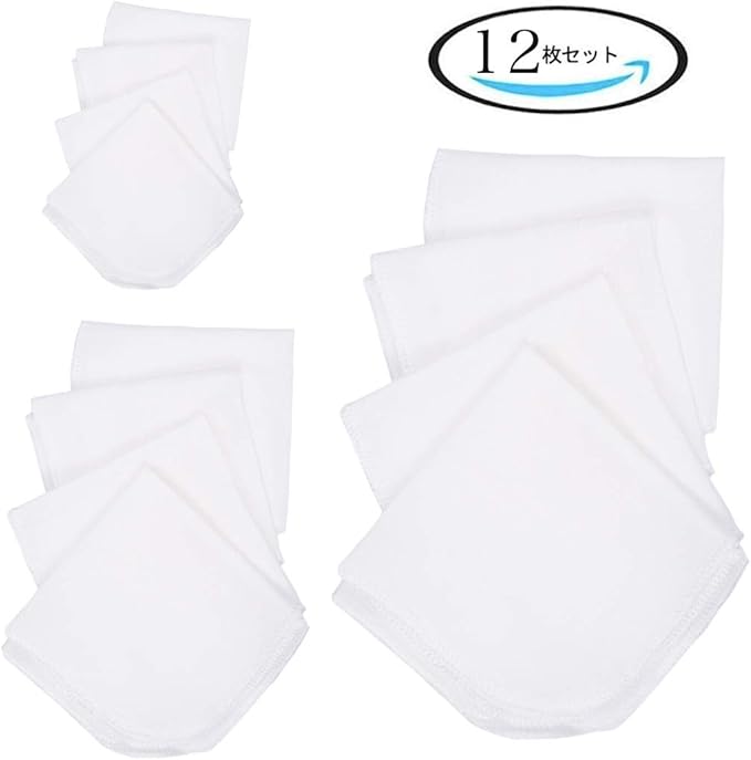 [MOMSMENU] ガーゼ ハンカチ ベビー 4重ガーゼのタオル 綿100% 柔らかい 無地 12枚 25x25cm