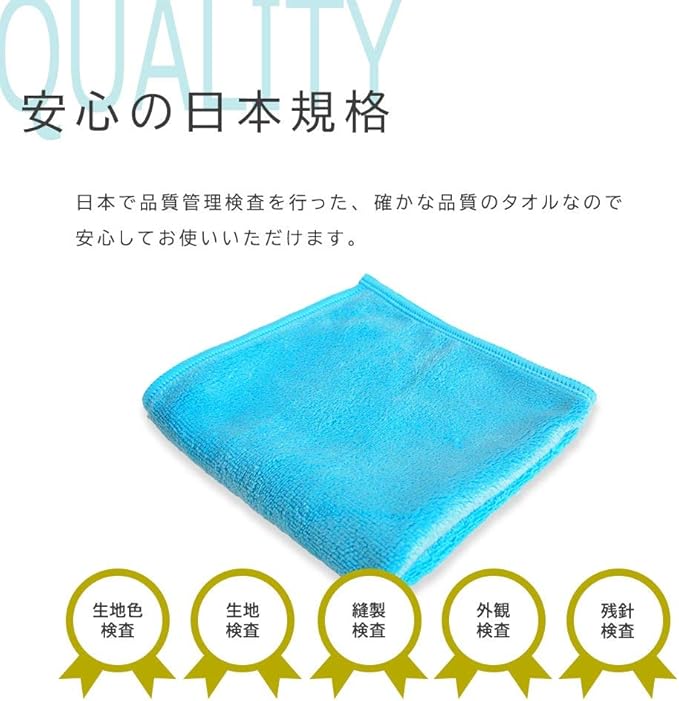 日本で品質管理検査を行った、確かな品質のタオルなので、安心してお使いいただけます。