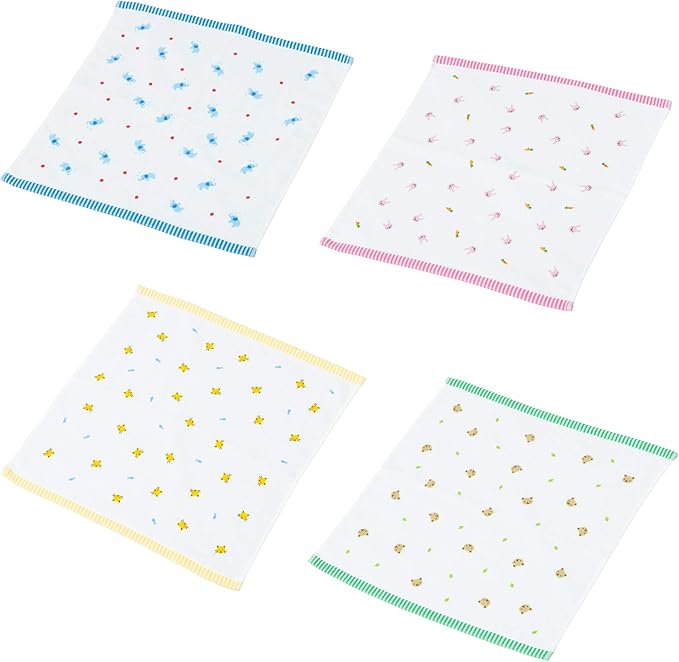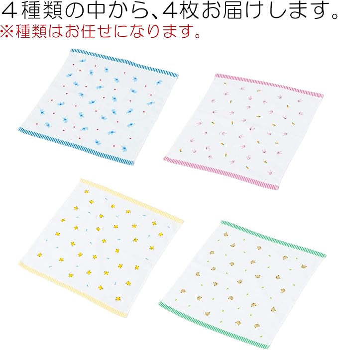 nishikawa【西川】 ハンドタオル 4枚組 色柄おまかせ ハンドタオル ガーゼ&パイル 薄手 速乾 軽量 泉州 どうぶつ柄 日本製 TT39002005M