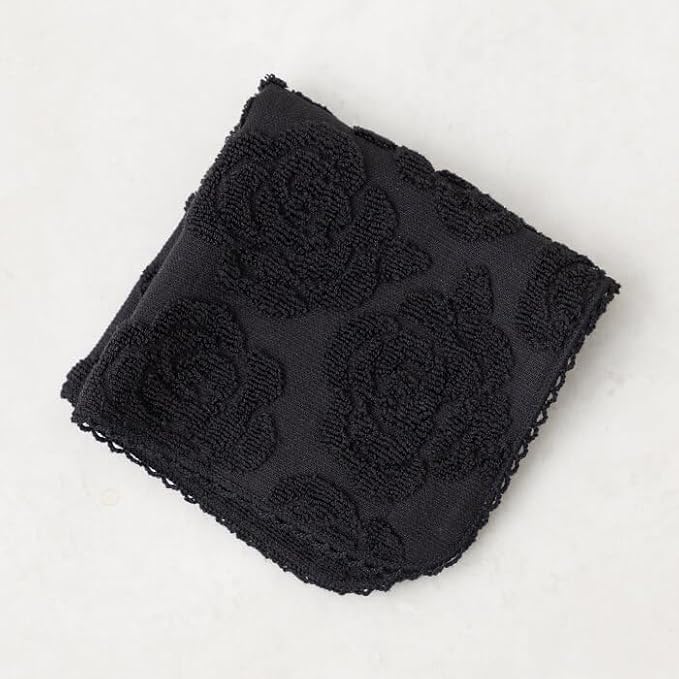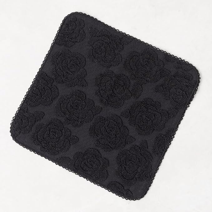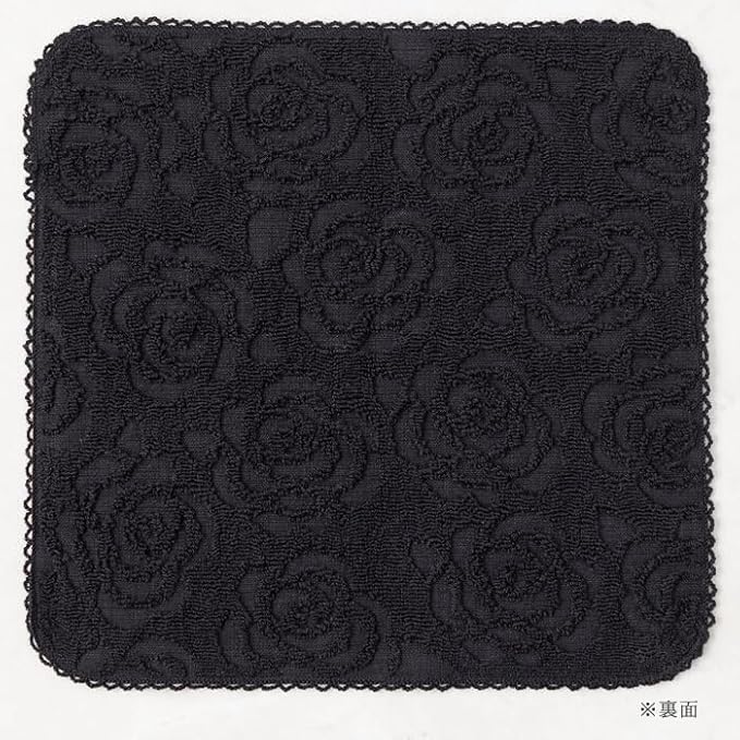 ローズモチーフのタオルハンカチ・黒(5664701-00-01)
