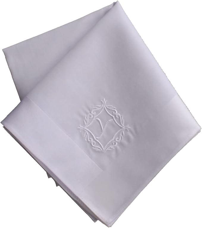 [ブルーミング] イニシャルコットン ハンカチ メンズ (ホワイト / 綿100% /約47cm) 紳士 ビジネス プレゼント ギフト