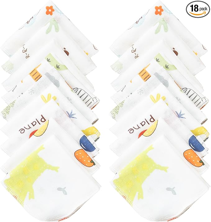 [HOOMCOOM] ガーゼハンカチ ベビー ダブルガーゼ 赤ちゃん 綿100% 名前入 可愛い 保育園用 20cmX20cm 18枚セット