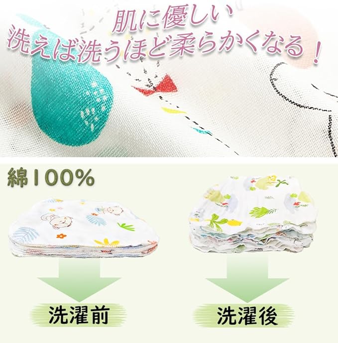 広い用途!口や手、汗などを拭くのに適していて、顔拭き、食事時、沐浴の際など幅広い場面で活躍いたします。